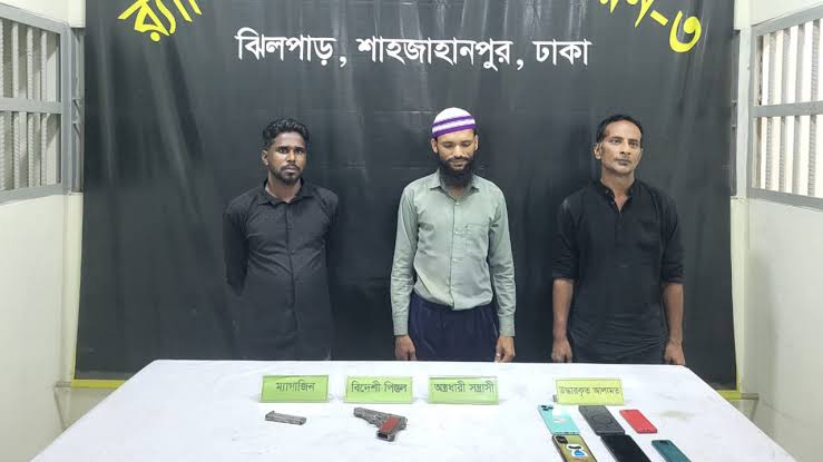 র‍্যাব-৩ এর অভিযানে খিলগাঁওয়ে অস্ত্রসহ তিনজন আটক
