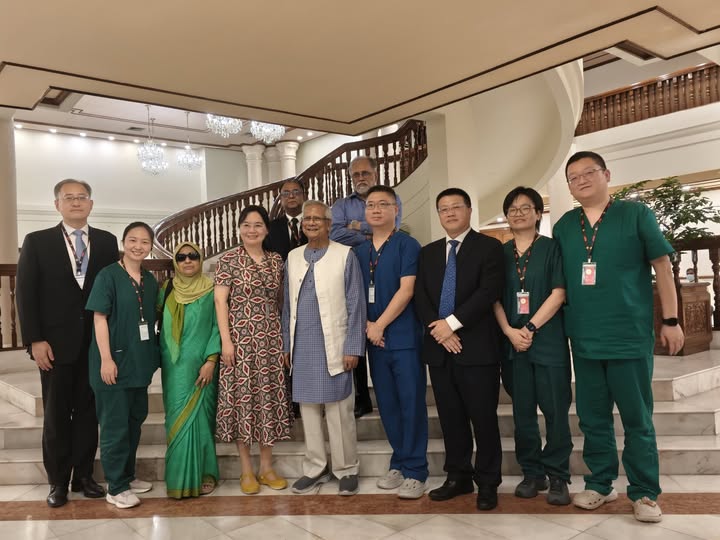 রোববার (২৭ জুলাই) রাজধানীর রাষ্ট্রীয় অতিথি ভবন যমুনায় সিঙ্গাপুর, চীন ও ভারতের ২১ সদস্যের একটি চিকিৎসক ও নার্সের দল প্রধান উপদেষ্টার সঙ্গে সাক্ষাৎ করেন। এসময় তিনি তাদের চিকিৎসা সহায়তা ও মানবিক সহযোগিতার জন্য ধন্যবাদ জানান।
