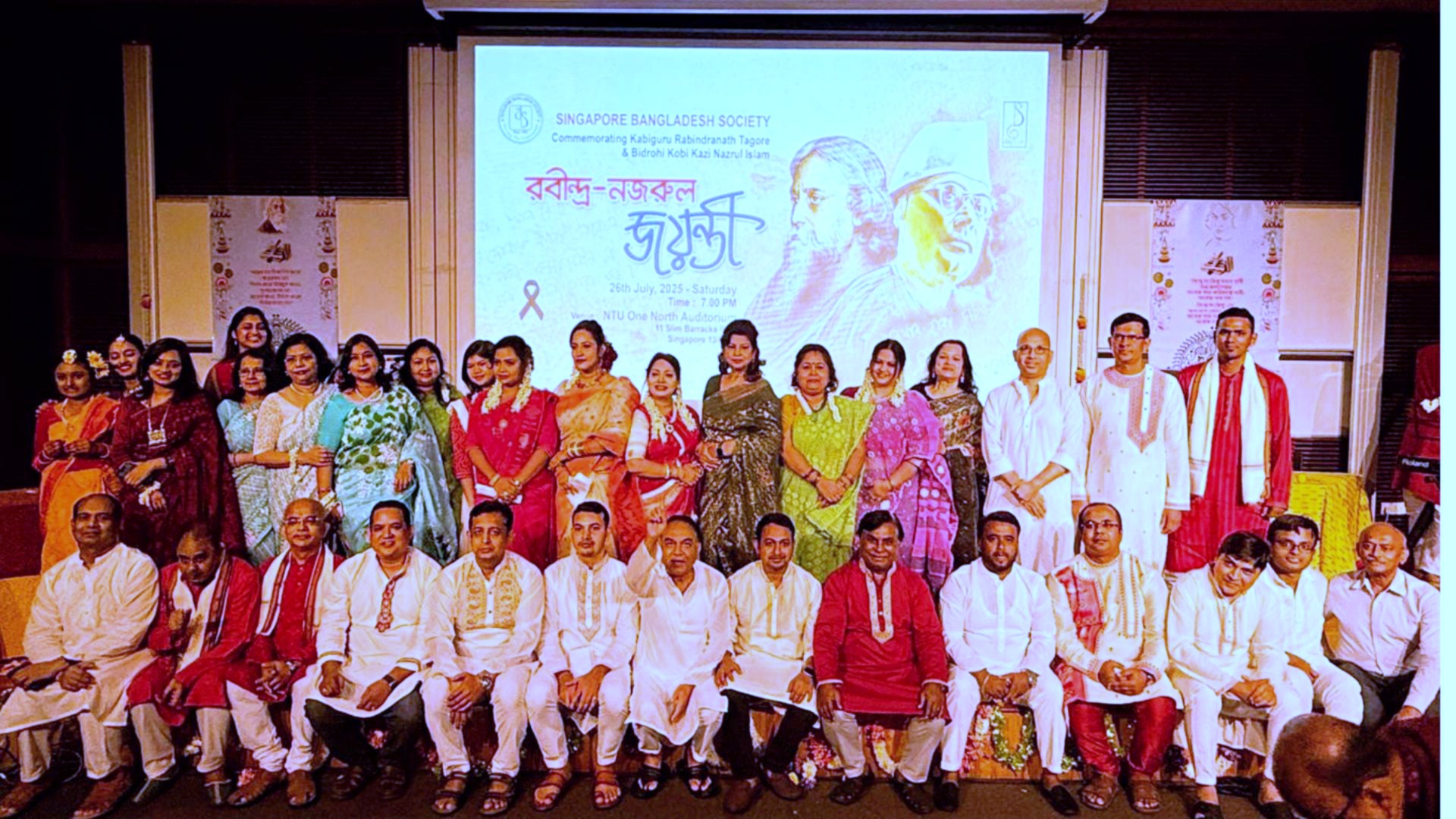 বাংলা সাহিত্যের দুই মহান পুরুষ, রবীন্দ্রনাথ ঠাকুর ও কাজী নজরুল ইসলামের জন্মজয়ন্তী উপলক্ষে সিঙ্গাপুর বাংলাদেশ সোসাইটি (SBS) এক মনোজ্ঞ সাংস্কৃতিক অনুষ্ঠানের আয়োজন করে। ২৬ জুলাই ২০২৫ তারিখে সিঙ্গাপুরের নানিয়াং টেকনোলজিকাল ইউনিভার্সিটি (NTU)-র অডিটোরিয়ামে অনুষ্ঠিত এই আয়োজনে প্রবাসী বাঙালিদের মধ্যে ব্যাপক উৎসাহ-উদ্দীপনা দেখা যায়।