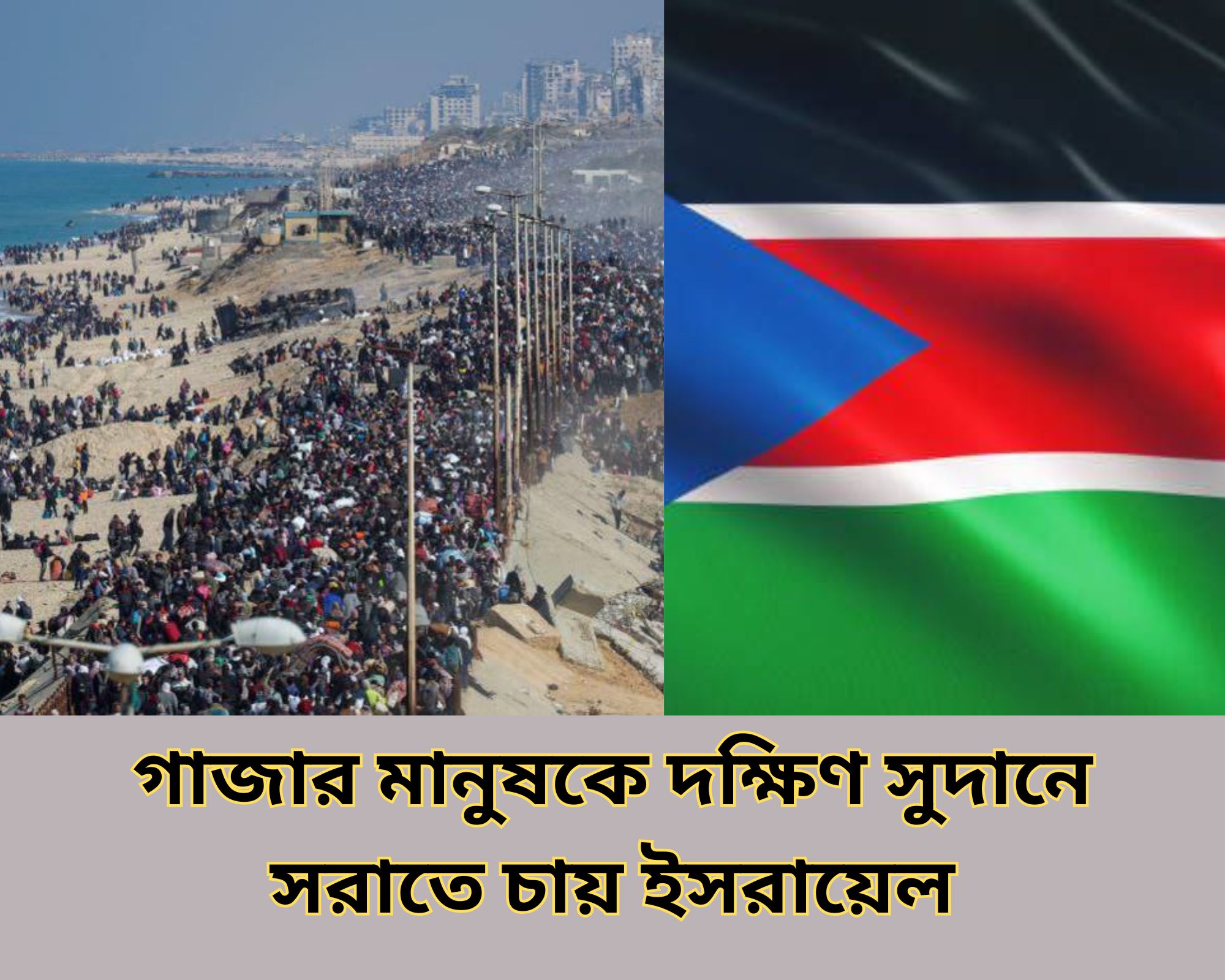 ইসরায়েল গাজা উপত্যকা থেকে ফিলিস্তিনিদের দক্ষিণ সুদান পুনর্বাসন করার সম্ভাবনা নিয়ে আলোচনা করছে, এমন সংবাদ প্রকাশ করেছে অ্যাসোসিয়েটেড প্রেস (এপি), যা আজ (১৩ আগস্ট) প্রকাশিত একটি প্রতিবেদনে উঠে এসেছে