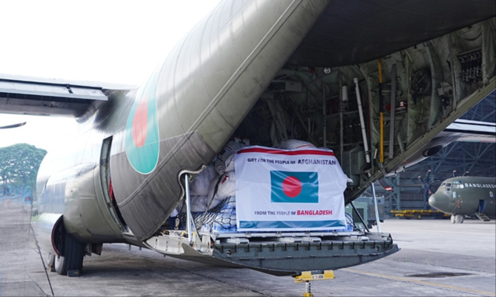 বাংলাদেশ এই মানবিক বিপর্যয় মোকাবিলায় এগিয়ে এসেছে। শুক্রবার (৫ সেপ্টেম্বর) বাংলাদেশ বিমান বাহিনীর একটি পরিবহন বিমান ১১ দশমিক ২৭ টন জরুরি ত্রাণ সামগ্রী নিয়ে কাবুলের উদ্দেশ্যে রওনা হয়েছে। ত্রাণ সামগ্রীর মধ্যে রয়েছে: তাঁবু, কম্বল, শীতবস্ত্র, খাবার পানি, শুকনো খাবার, কাপড়, বিস্কুট, মিল্ক পাউডার, নুডুলস এবং ঔষধ।