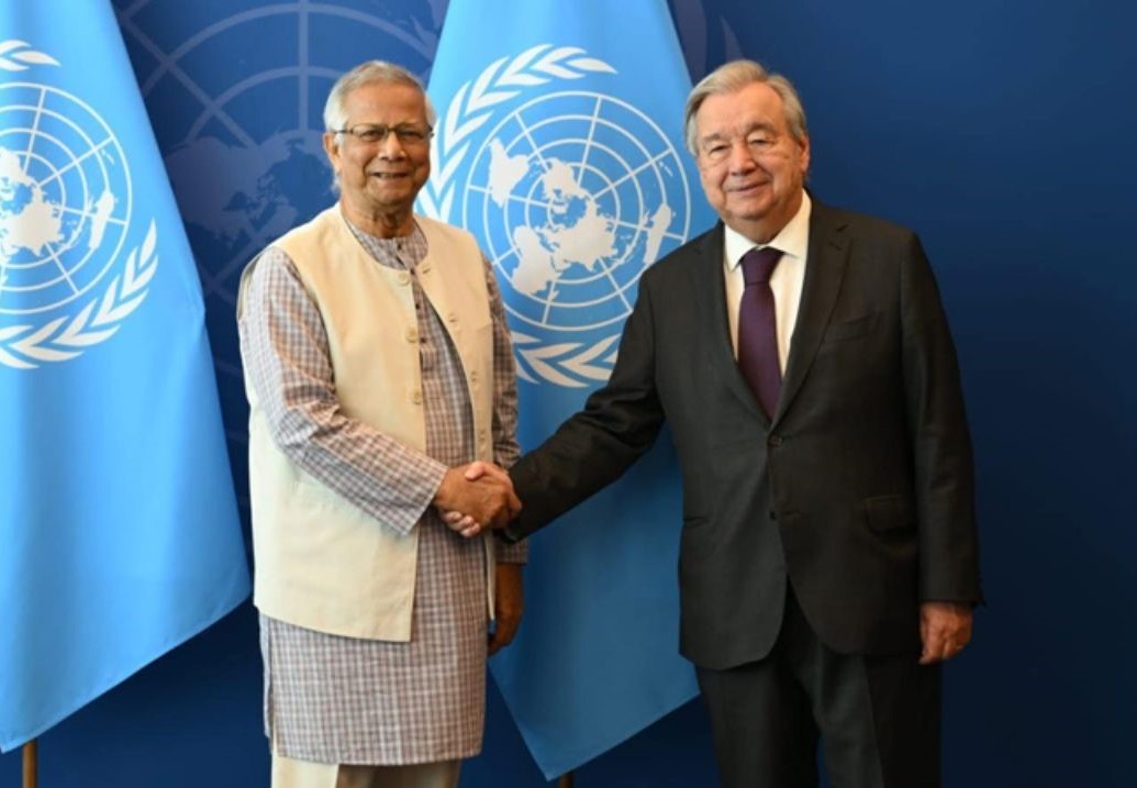 বাংলাদেশের চলমান গণতান্ত্রিক উত্তরণ ও সংস্কার কর্মসূচির প্রতি পূর্ণ সমর্থন ও সংহতি প্রকাশ করেছেন জাতিসংঘ মহাসচিব আন্তোনিও গুতেরেস। সোমবার নিউইয়র্কের জাতিসংঘ সদর দপ্তরে প্রধান উপদেষ্টা অধ্যাপক মুহাম্মদ ইউনূসের সঙ্গে এক বৈঠকে এ সমর্থনের কথা জানান তিনি। প্রধান উপদেষ্টার প্রেস উইং থেকে জানানো হয়, অধ্যাপক ইউনূসের নেতৃত্বে উচ্চপর্যায়ের একটি প্রতিনিধিদল বৈঠকে অংশ নেয়, যেখানে উপস্থিত ছিলেন পররাষ্ট্র উপদেষ্টা তৌহিদ হোসেন, জাতীয় নিরাপত্তা উপদেষ্টা ড. খলিলুর রহমান, মুখ্যসচিব সিরাজ উদ্দিন মিয়া এবং এসডিজি সমন্বয়ক লামিয়া মোর্শেদ। বৈঠকে রাজনৈতিক সংস্কার, ফেব্রুয়ারিতে অনুষ্ঠেয় জাতীয় নির্বাচন, জুলাই অভ্যুত্থানে সংঘটিত গণহত্যার জন্য দায়ীদের জবাবদিহিতা, বৈশ্বিক বাণিজ্যে সুরক্ষামূলক শুল্কনীতির প্রভাব এবং ৩০ সেপ্টেম্বর অনুষ্ঠেয় আন্তর্জাতিক রোহিঙ্গা সম্মেলন নিয়ে আলোচনা হয়। বৈঠকে প্রধান উপদেষ্টা ইউনূস জাতিসংঘ মহাসচিবকে জানান, অন্তর্বর্তী সরকার ইতোমধ্যেই এমন সংস্কারমুখী পদক্ষেপ নিয়েছে যা একটি অবাধ, সুষ্ঠু ও শান্তিপূর্ণ নির্বাচন নিশ্চিত করতে সহায়ক হবে। তিনি আরও বলেন, আগামী কয়েক মাস বাংলাদেশের জন্য অত্যন্ত গুরুত্বপূর্ণ এবং জাতিসংঘের সহায়তা নির্বাচন প্রক্রিয়ায় অপরিহার্য। ইউনূস অভিযোগ করেন, ক্ষমতাচ্যুত সরকার ও তাদের মিত্ররা পাচার করা সম্পদের মাধ্যমে দেশে অস্থিরতা সৃষ্টির জন্য বিভ্রান্তিকর প্রচার চালাচ্ছে এবং তারা ফেব্রুয়ারির নির্বাচন চায় না। কিছু আন্তর্জাতিক মহলও তাদেরকে সমর্থন দিচ্ছে বলে তিনি উল্লেখ করেন। এর জবাবে গুতেরেস বাংলাদেশের গণতান্ত্রিক উত্তরণ ও সংস্কার কর্মসূচিতে জাতিসংঘের দৃঢ় সমর্থন পুনর্ব্যক্ত করেন। তিনি আরও জানান, রোহিঙ্গা সংকটের দীর্ঘমেয়াদি সমাধানে জাতিসংঘ অব্যাহতভাবে প্রতিশ্রুতিবদ্ধ থাকবে। গুতেরেস গত ১৪ মাসে অধ্যাপক ইউনূসের নেতৃত্বের প্রশংসা করে বলেন, বাংলাদেশের এই কঠিন উত্তরণকালীন সময়ে আপনার নেতৃত্ব তিনি শ্রদ্ধা ও প্রশংসা করেন। বৈঠকে অধ্যাপক ইউনূস আন্তর্জাতিক রোহিঙ্গা সম্মেলন আয়োজনের জন্য মহাসচিবকে ধন্যবাদ জানিয়ে বলেন, এই সম্মেলন রোহিঙ্গা সংকটকে বিশ্ব সম্প্রদায়ের অগ্রাধিকার তালিকায় রাখবে এবং শরণার্থী শিবিরে জরুরি মানবিক সহায়তার জন্য প্রয়োজনীয় তহবিল সংগ্রহে সহায়তা করবে। জবাবে জাতিসংঘ মহাসচিব রোহিঙ্গা সংকটের টেকসই সমাধানের পথ খুঁজে পেতে বাংলাদেশের পাশে থাকার প্রতিশ্রুতি পুনর্ব্যক্ত করেন।