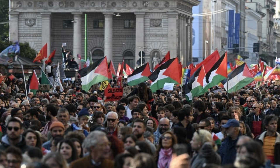 ফিলিস্তিনিদের প্রতি সংহতি জানাতে এবং গাজাগামী মানবিক ত্রাণবহরের প্রতি সমর্থন জানাতে শুক্রবার ইতালির রাস্তায় নেমে আসে লাখো মানুষ। দেশজুড়ে সংগঠিত এই ধর্মঘট ও বিক্ষোভে শুধু রাজধানী রোম নয়, মিলান, তুরিন, নেপলস, জেনোয়া, বারি থেকে শুরু করে দক্ষিণাঞ্চলীয় শহর পর্যন্ত উত্তাল হয়ে ওঠে জনসমুদ্র।