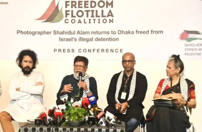 ইসরায়েলের কারাগার থেকে মুক্তি পেয়ে দেশে ফিরেছেন বিশিষ্ট আলোকচিত্রী ও মানবাধিকারকর্মী শহিদুল আলম। শনিবার (১১ অক্টোবর) ভোরে ঢাকার হযরত শাহজালাল আন্তর্জাতিক বিমানবন্দরে পৌঁছান তিনি। বিকেলে রাজধানীর দৃক পাঠ ভবনে আয়োজিত এক সংবাদ সম্মেলনে বন্দিদশার ভয়াবহ অভিজ্ঞতার বর্ণনা দেন এবং আবারও ফিলিস্তিনে যাওয়ার ঘোষণা দেন তিনি।