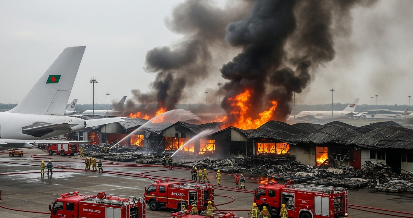 বিমানবন্দর কর্তৃপক্ষ জানায়, কার্গো ভিলেজের পাশের একটি অংশে আগুন লাগে। ঘটনাস্থলে বিমানবন্দর ফায়ার সেকশন, বাংলাদেশ বিমান বাহিনী ও অন্যান্য সংস্থা সম্মিলিতভাবে কাজ করছে। যদিও প্রথমে ফ্লাইট ওঠানামা স্বাভাবিক ছিল, পরে নিরাপত্তার স্বার্থে সাময়িকভাবে সব ফ্লাইট অপারেশন স্থগিত রাখা হয়।